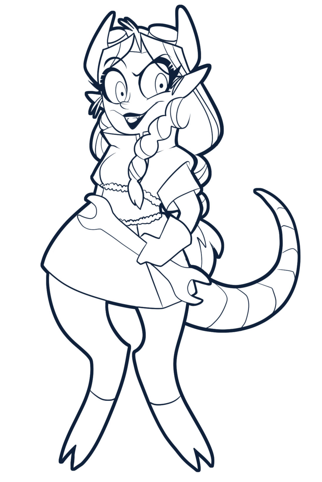 Tinker is a D&D character for a steampunk campaign with nordic gods that I was in during COVID. She is an artificer who firmly believes in the scientific method, and less so in baths or basic hygiene. She has been known to taste things to study them, even if she shouldn't. She was born without a tail but later learned she was originally a unicorn god and regrew it.